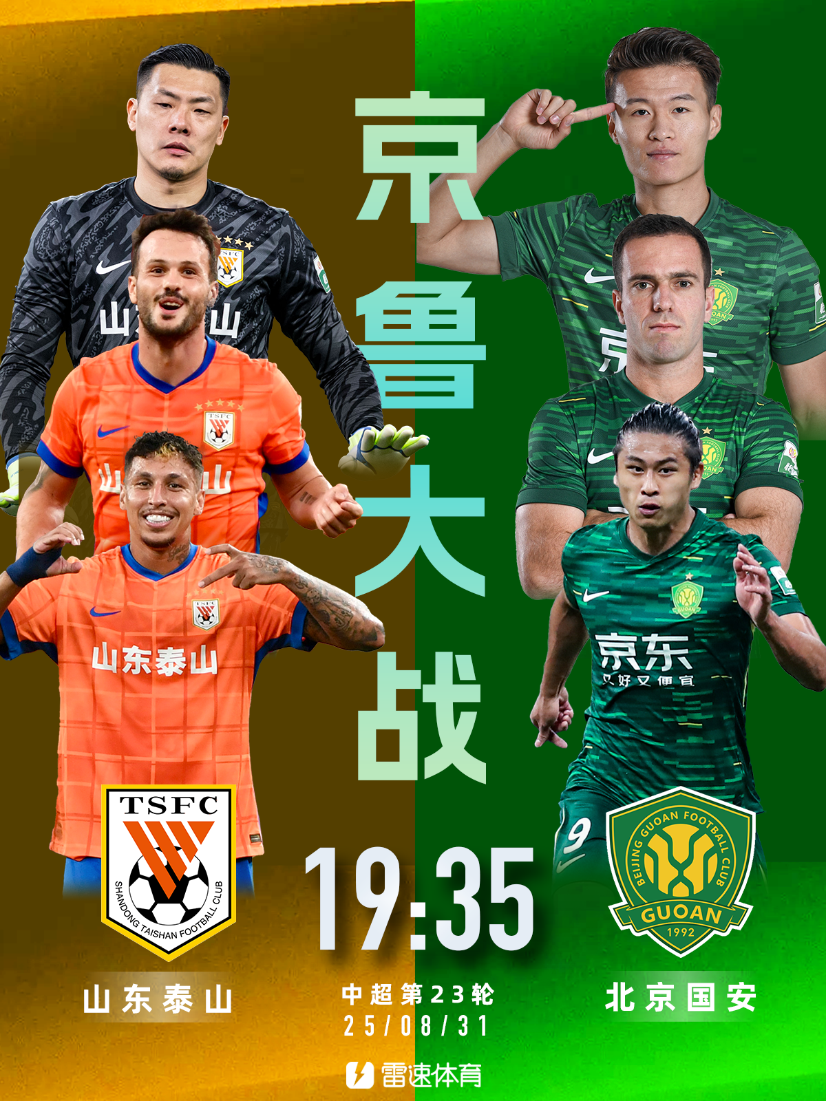 雷速体育8月31日讯 中超联赛第23轮,山东泰山在主场迎来与北京国安的京鲁大战。